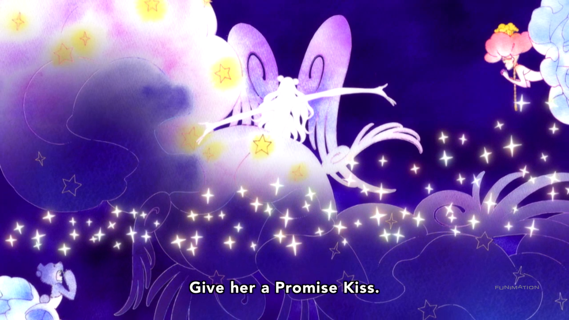 It’s used to foreshadow past and future happenings in regards to: Yuriika and Reia, and Ginko and Kureha, respectively; it maintains parallelism in regards to the world the anime takes place in; it helps to explain and reinforce the idea that the only thing stopping love from occurring is “you”; it places Kumalia as the “divider” of the world and as its all-knowing, otherworldly being – aka, God; it demonstrates the uniqueness of the separate sides, their figurative “distance,” yet just how similar and close they truly are; it relates back to the Promise Kisses as “shooting stars” in the sky, and how they’re used to make that ultimate connection; and that the crossing of this wall can be viewed as sinful – more religious undertones.