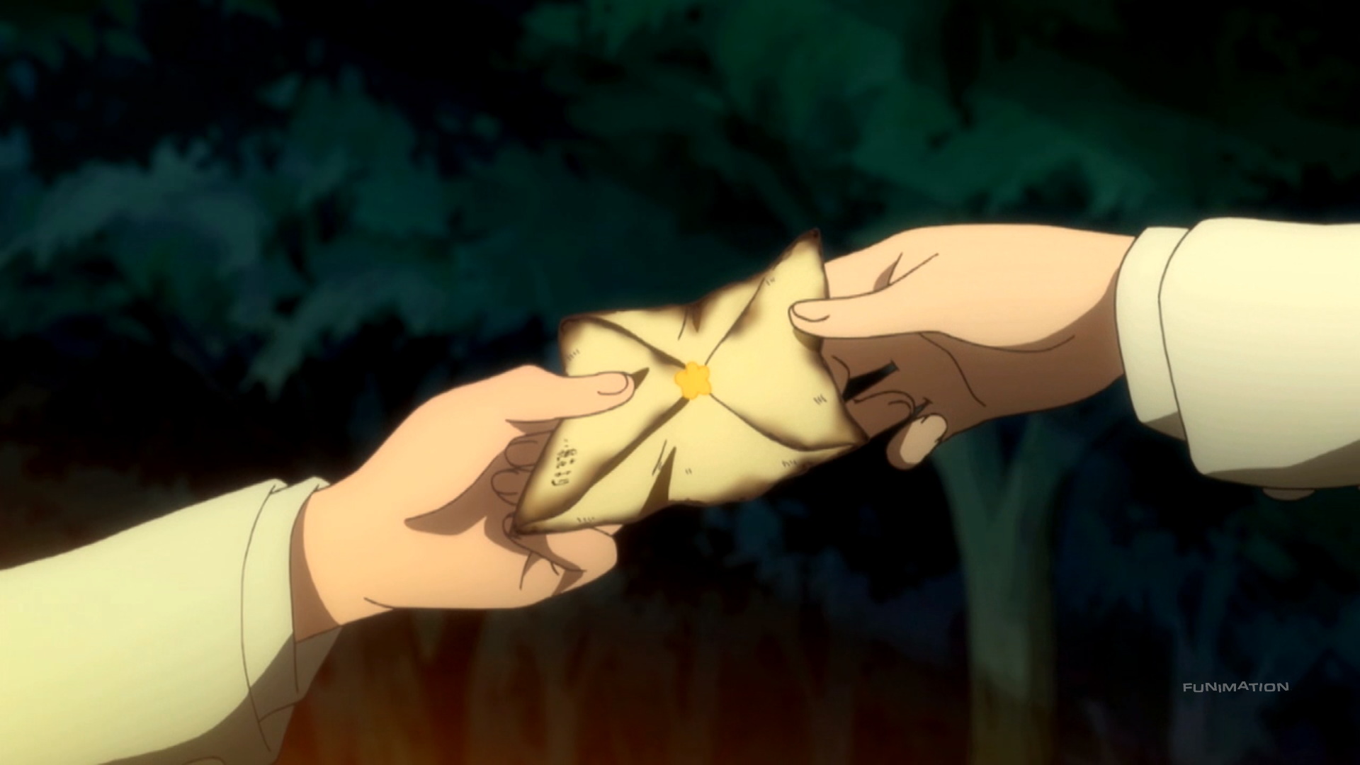 This has already been seen just prior with the candles; they’re at first symbolic of a momentous occasion but then become symbolic of religious affiliations. This can be extended everywhere. Going back further, the picture book holds different meanings depending on its applications to the different characters and events – homosexuality and racism, to be specific. The fire that engulfs the flowers is first a device that represents anger, hate, and spite towards Kureha but later becomes representative of Ginko’s love, passion, and drive to protect her. In the above image, Sumika’s letter is initially a device used to crush and destroy Kureha while simultaneously painting Sumika as traitorous. But when the variables change, it comes to be what heals and mends Kureha, and instead shows Sumika to be a savior, someone who “doesn’t back down on love”; it’s her “Promise Kiss” and “sacrifice” of herself, enveloped into one entity. And Harishima embodies this direction as well: she symbolizes friendliness but eventually betrayal, once the contextshifts.
