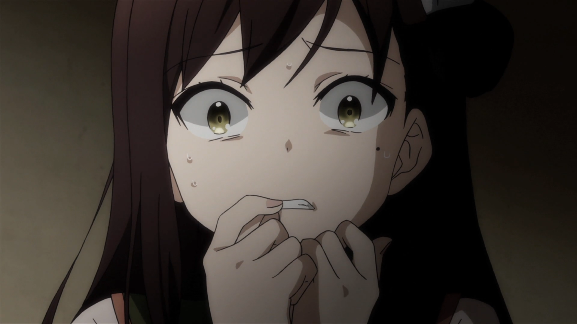 Yuuri looked up to Megumi, seeing the teacher as someone to emulate or at least follow, Megumi’s pure kindness a rare trait for anyone to have. So Yuuri takes the same path: she plays along with Yuki’s antics, she advises Kurumi to not overexert herself, and she talks privately with Miki to ease Miki’s conscious. She wants to be there for the girls in their time of need as best as she can, and therefore what she has more so than the others is a sense of calm. Yuuri’s strength is the ability to keep the group stable through her loving watch. This is why when she breaks down, she breaks down hard. She does not know how to handle the hectic final set of events because nobody is there to keep her calm. Seeing her in such a state is noticeable to the viewer; if Yuuri of all people cannot keep it together, it must truly be a dire situation. Similar to Kurumi, though, it is unclear how these events and their time at the school has changed her. At the minimum, she is thankful to Megumi for imprinting on her the same set of values, allowing her to keep her and the group from losing all hope.