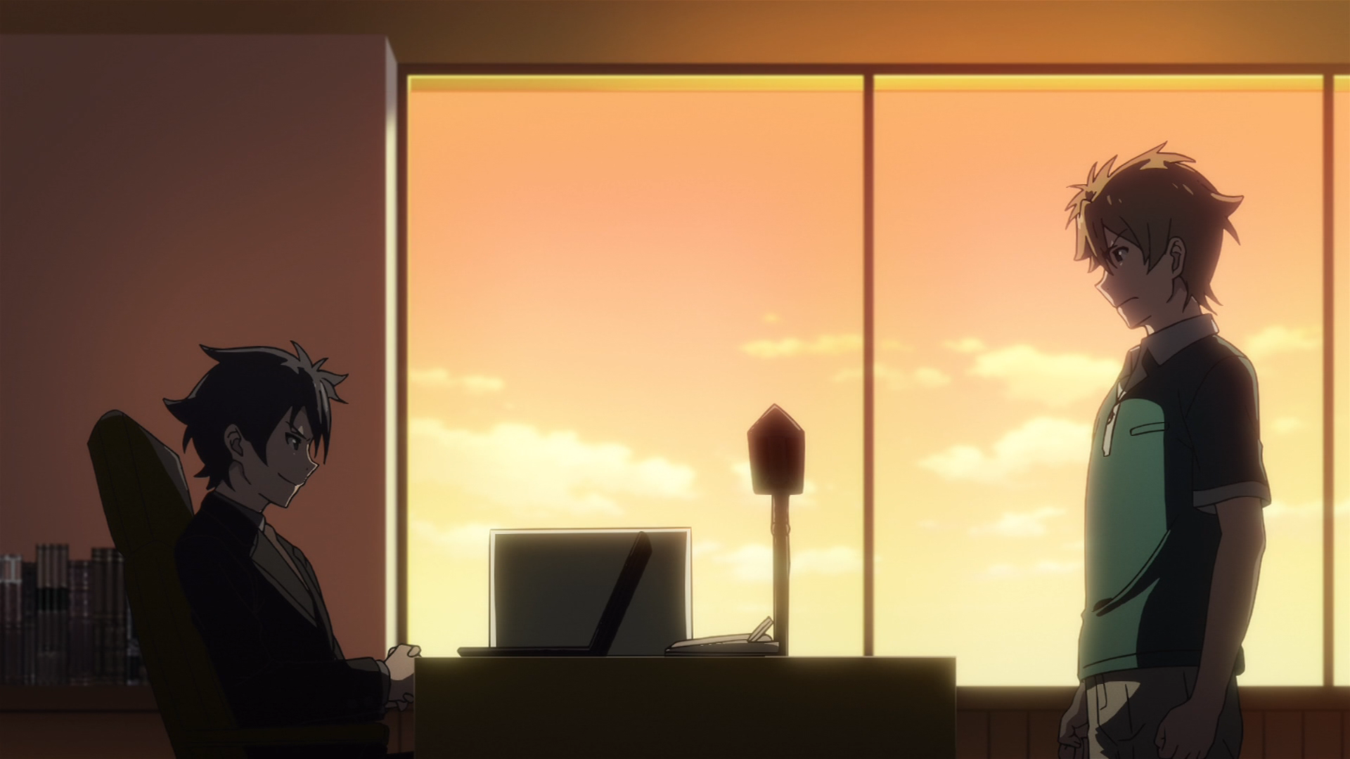 But Classroom Crisis would not be as good as it is if it just ignored the conflict. Hence, Nagisa, over a video feed, has some final words to say to Kazuhisa, just as he did with his other brother hours prior.