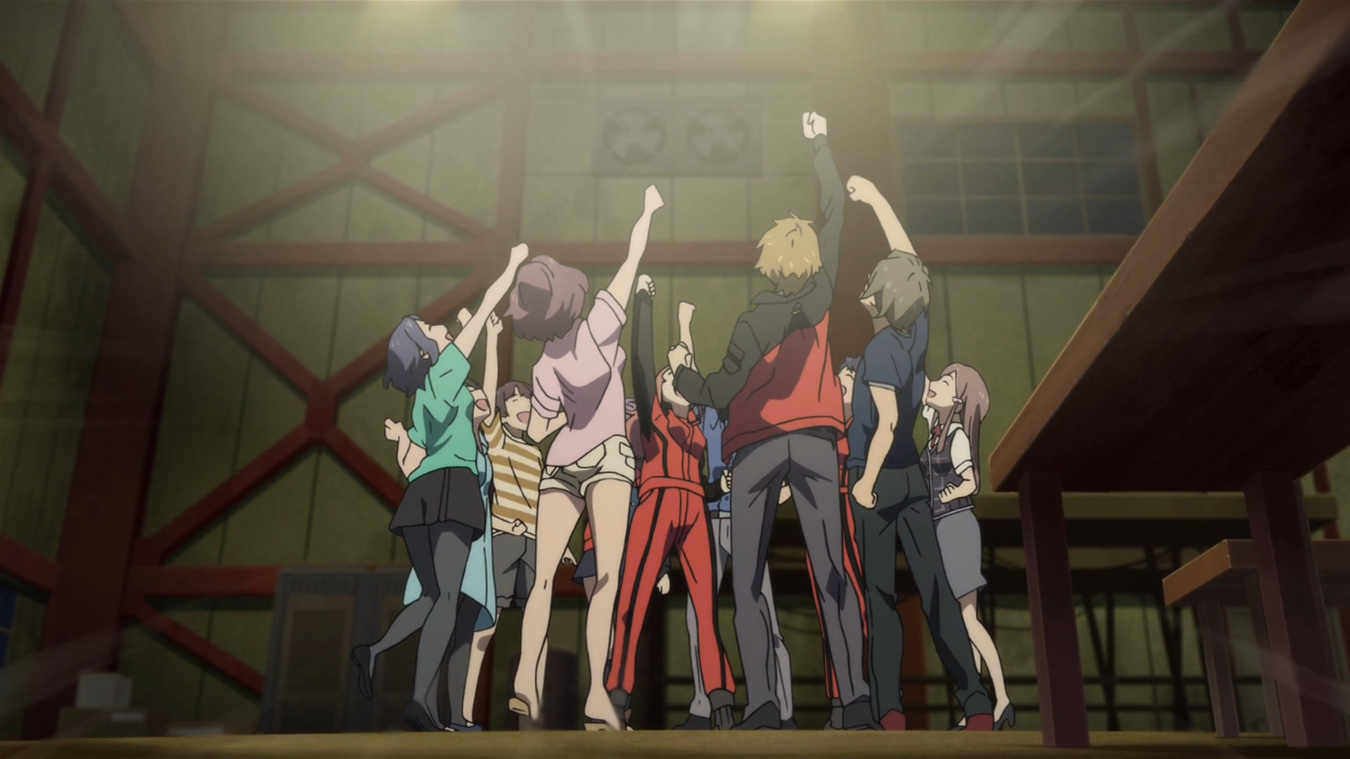 And afterwards, just for good measure, Nagisa says the final line of the season, a line that mirrors Kazuhisa’s words to Nagisa — “Let’s you and I buy up the whole world, Nagisa Kiryu…” — back in episode eleven. Nagisa’s line solidifies their group once and for all.