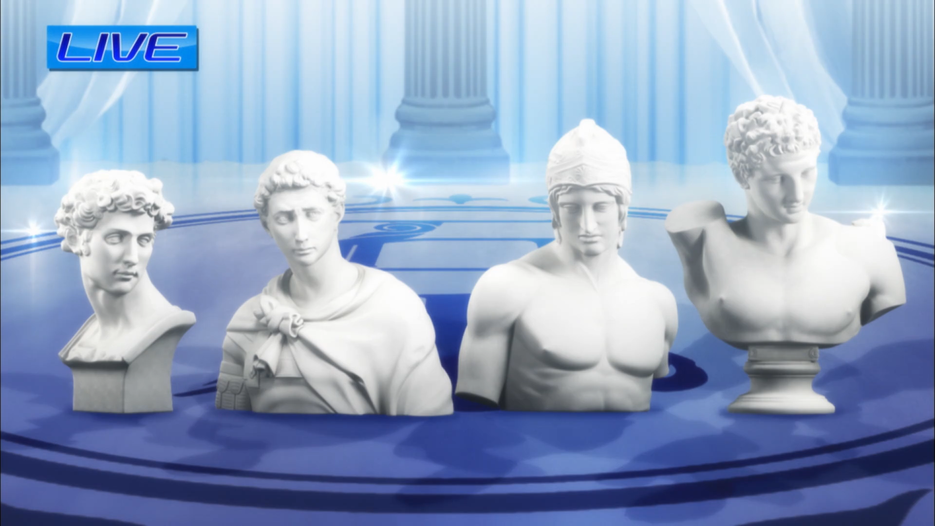 If statues could talk, what would they say? Sekkou Boys lets its audience know that marble wouldn’t just speak; they would sing. Following St. Giorgio, Mars, Hermes, Medici, and their stressed-out manager Miki, the anime focuses on being quirky, silly, and funny. Animation and music (minus the ED, of course) may not be its strong suit, but its varied jokes, fact-based characters, and short length keep this one from being a bust.