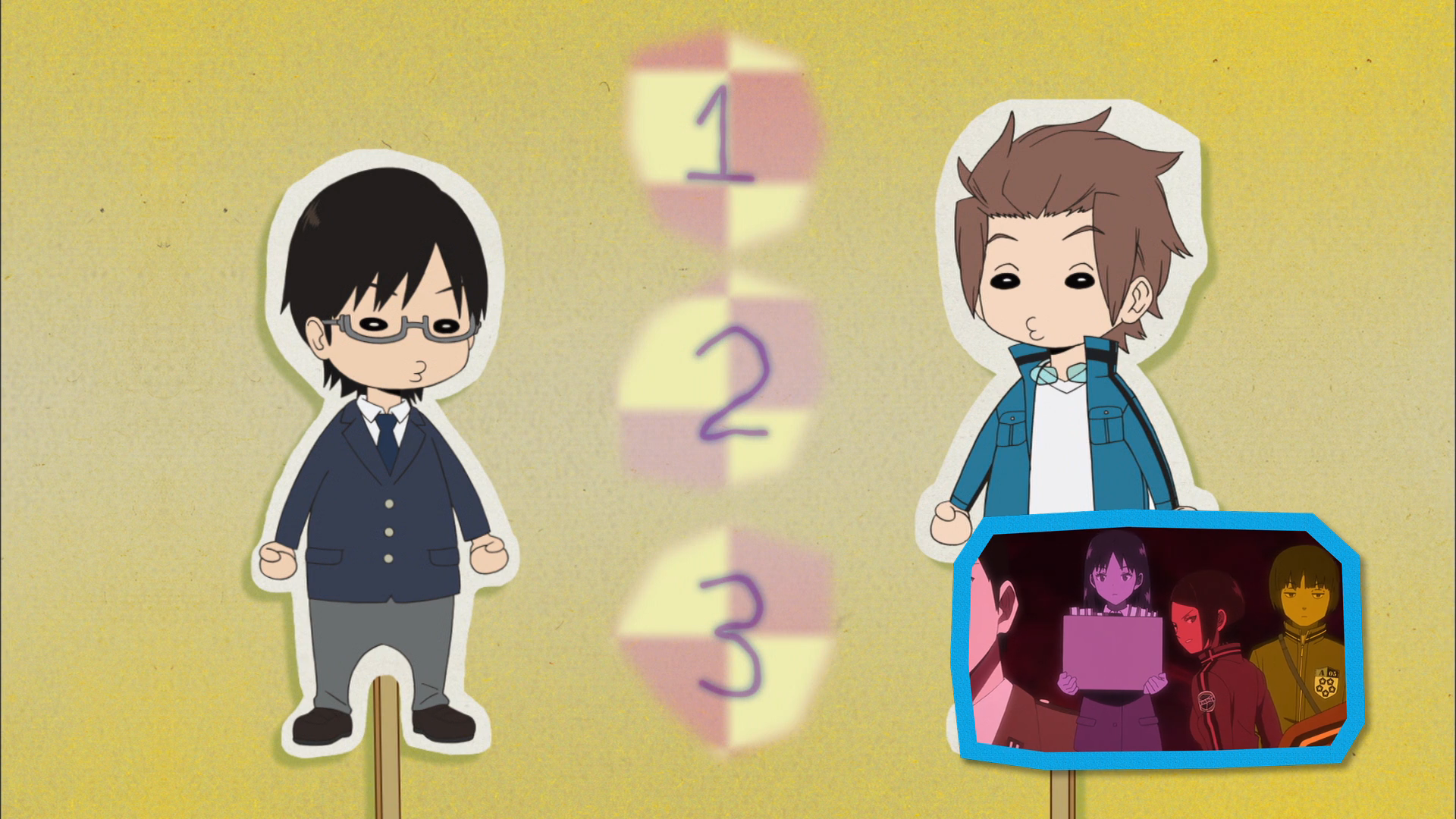 The third goes to the “fun” facts epilogues. They went cutesy and minimalist to fit their “fun” mood, but it really just seems as though the anime was cutting corners with the cutouts.