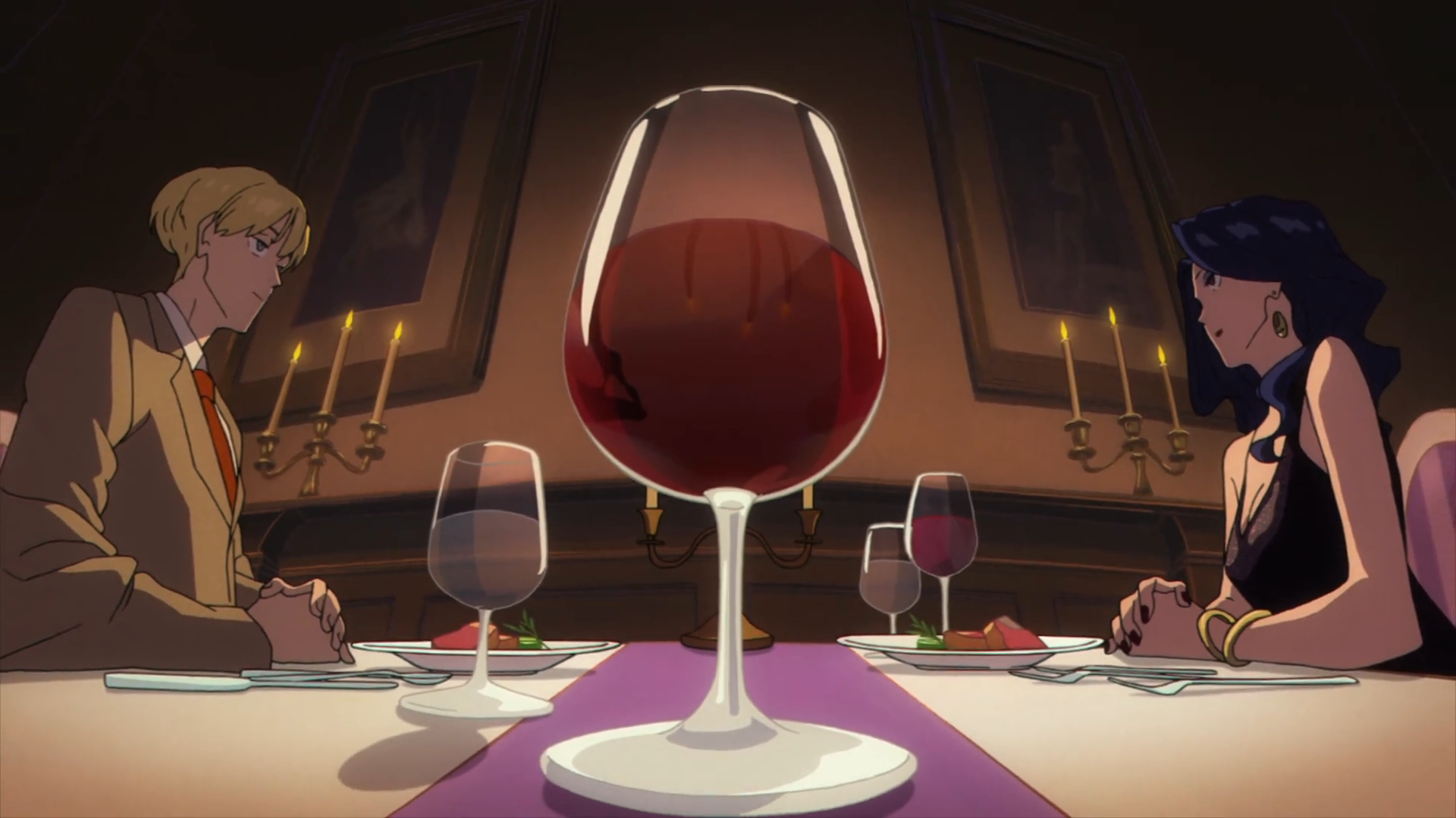 To make up for the subpar animation, then, the show incorporates a few directorial techniques to help improve engagement with the visuals. Certain shots provide interesting perspectives like when the camera takes on a fisheye lens atop the table where Jean and Mauve speak over dinner. And lighting as well as other small details, like creased clothing and a wide range of sky patterns, keep time and realism in mind.