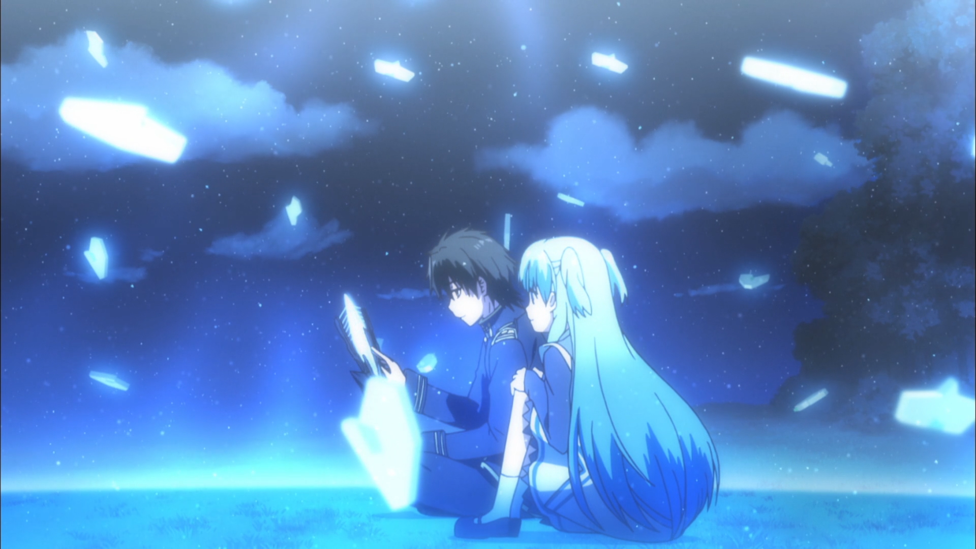 On a day like any other, a blue-haired girl named Chtholly crosses paths with a man named Willem in the streets of a city that rests atop a floating chunk of land. They spend the day together as newfound acquaintances but must eventually part ways – only for him to coincidentally become the caretaker of a warehouse that houses her, other girls of a similar or younger age, and a bunch of top-secret “weapons.” When Willem learns that those weapons are the very same girls he now looks after, SukaSuka finally gets its core underway.