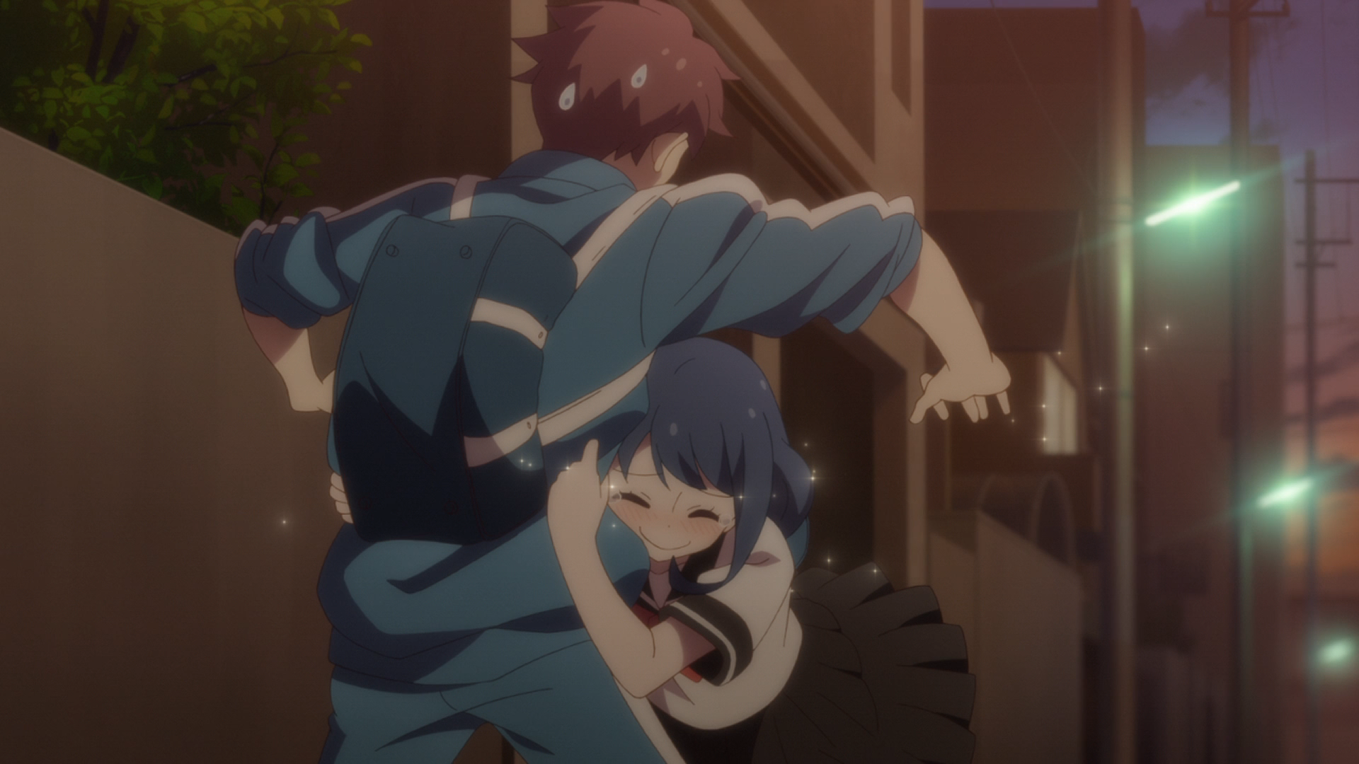 Tsurezure Children / Episode 5 / Ayaka grabbing onto Takeru out of pure happiness