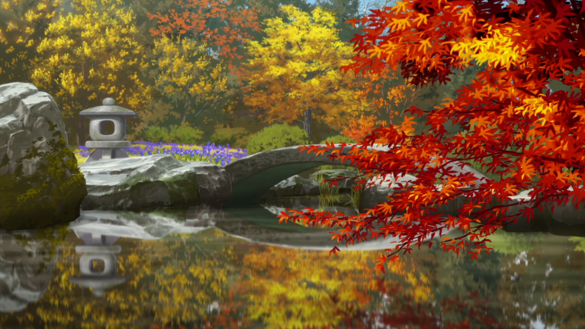 The ladies’ designs also contribute. Yes, they have specific looks which distinguish them from each other and their personalities. Natsume is tall and tomboyish. Kiri is mature and reserved. Ren is pretty and adorable. However, their collective details, such as the fox-girl angle and the colorful, refined outfits, not only improve upon the fantastical nature of Konohana Kitan but also get at the desired pleasantries of the visuals.